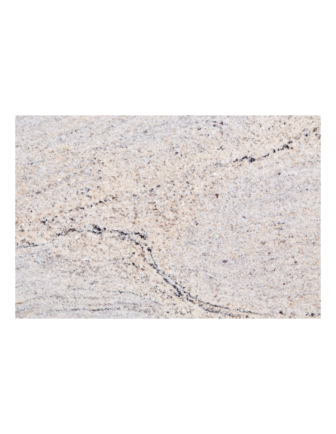 Colonial Ivory, which is a granite that is mined in India. With a slightly jagged pattern that is unique to the granite, while at the same time containing dark and light lines. Ideally suited for worktops in the kitchen and bathroom, as well as fireplace decoration and windowsills.