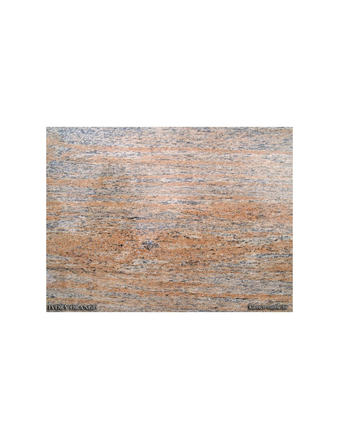 Ivory Orange granite with a red, black and white pattern. Possible applications: Flooring and cladding in interiors and exteriors.