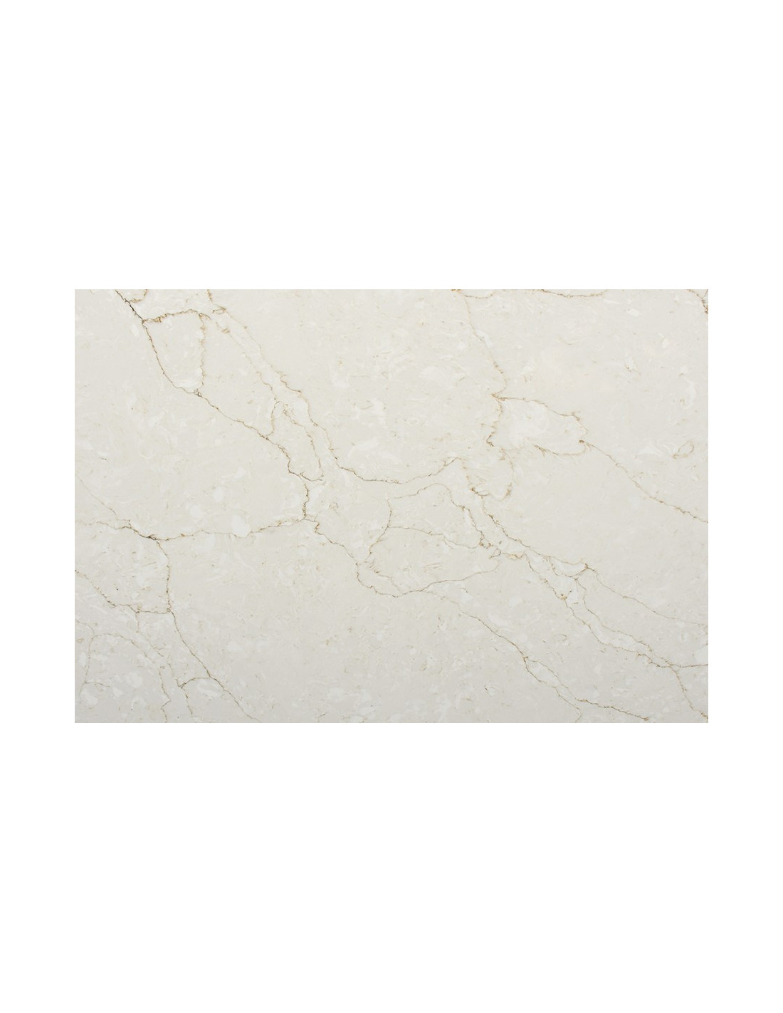 Dolce Vita Quartz ima kremasto bijelu bazu s elegantnim, tekućim žilicama. Uzorak uključuje toplo zlatne i suptilne sive žile, pružajući vrlo sofisticiranu, privlačnu i izdržljivu površinu za luksuznu unutarnju primjenu.